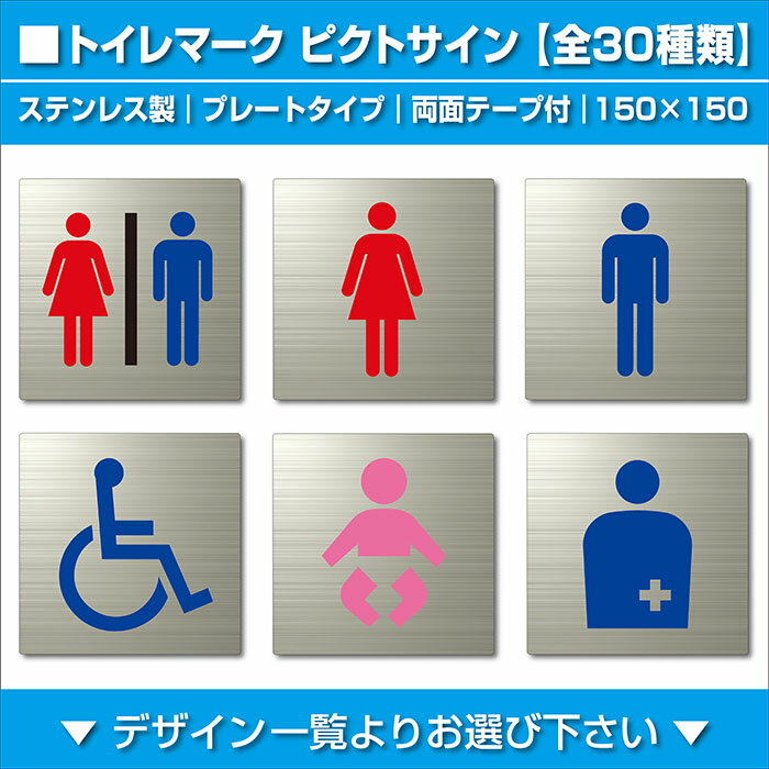 『トイレマーク ピクトサイン 全30種』【デザイン選択】150mm×150mm ステンレスH.Lプレート:両面テープ付(1枚)