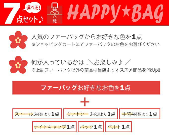 福袋 2018 レディース ニット ファー ファーバッグ 大判ストール マフラー スヌード バッグ 手袋 スマホ対応 トップス カットソー フリーサイズ チェック柄 ブラウス サッシュベルト ナイトキャップ シルク 秋冬 カゴバッグ 楽天 ハッピーバッグ [box-009]【half♪】