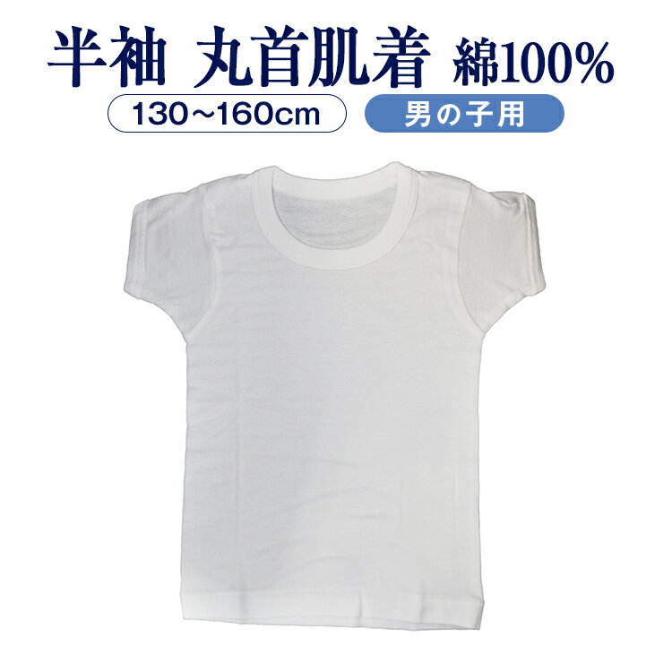 キッズ 半袖 丸首シャツ 白 2枚組 綿100% 100 110 120 130 140 150 160 下着 子供 男の子 ジュニア インナー(男児肌着 ボーイズ 小学生 中学生 子供下着 ジュニア こども 男子 セット 男児 tシャツ インナーシャツ 子供服 子ども服 コットン100% 通園 通学)