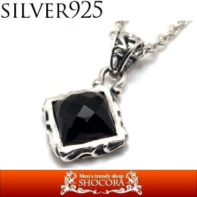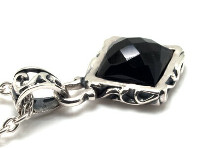 シルバーネックレス オニキス×パルメットスクエアフレーム シルバーペンダント シルバー925多面カットのオニキスをスクエアのフレームで取り囲んだペンダント